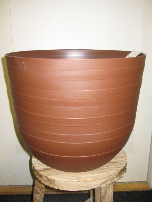 Kierrätysmuovista valmistettu muoviruukku. Korkeus 12,5 cm, halkaisija 13,5 cm. Pohjassa ei ole reikää.