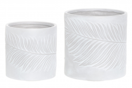 Sylinterin mallinen ruukku, lehtikuviolla.