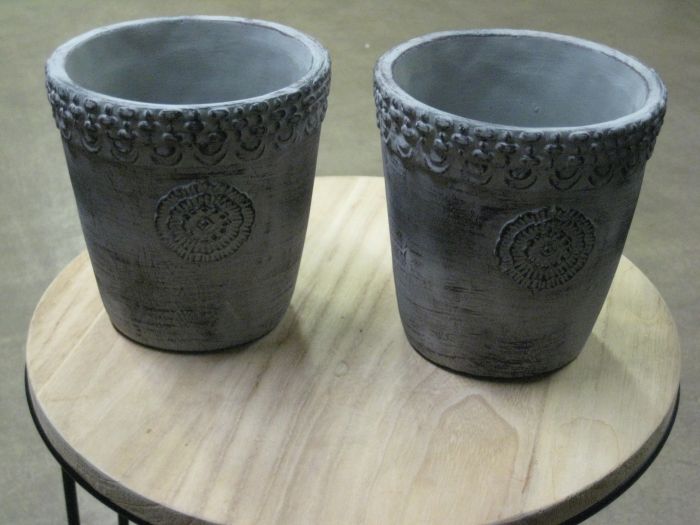 Keraaminen ruukku, ornamentti kuvio. Väri harmaa.