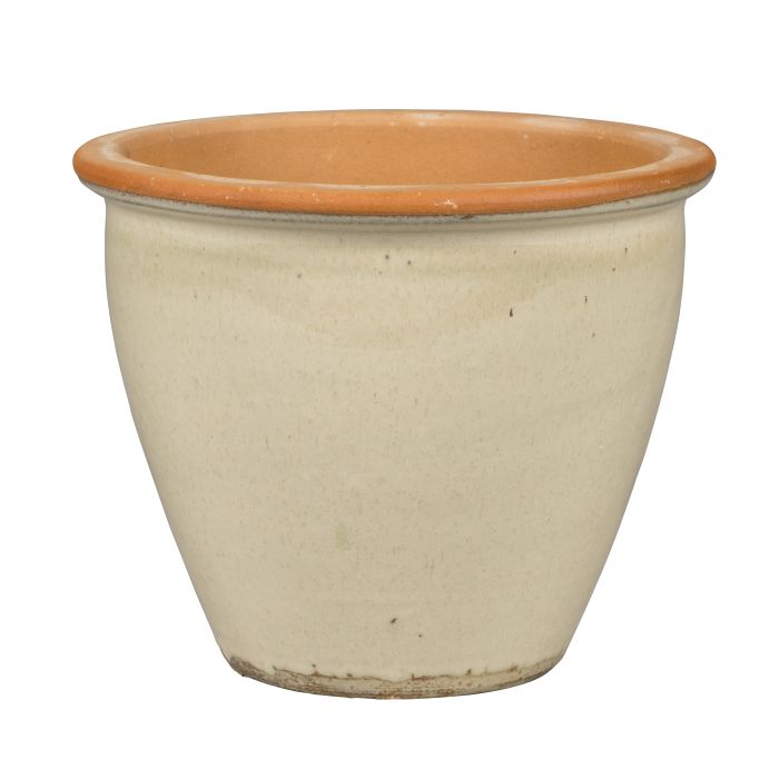Kaunis keraaminen, pitsikuvioinen ruukku. Väri valkoinen. Korkeus 12 cm, halkaisija 10 cm. Pohjassa ei ole reikää.