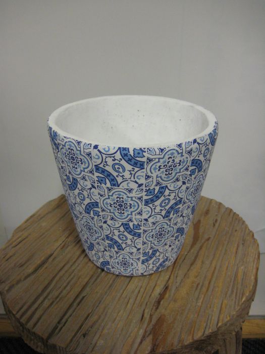 Väri valkoinen, kuviointi sininen.