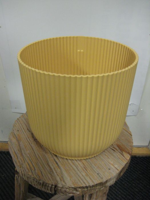 Kierrätysmuovista valmistettu muoviruukku. Kaunis pystyraita -kuvio.