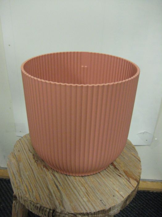 Kierrätysmuovista valmistettu muoviruukku. Kaunis pystyraita -kuvio.