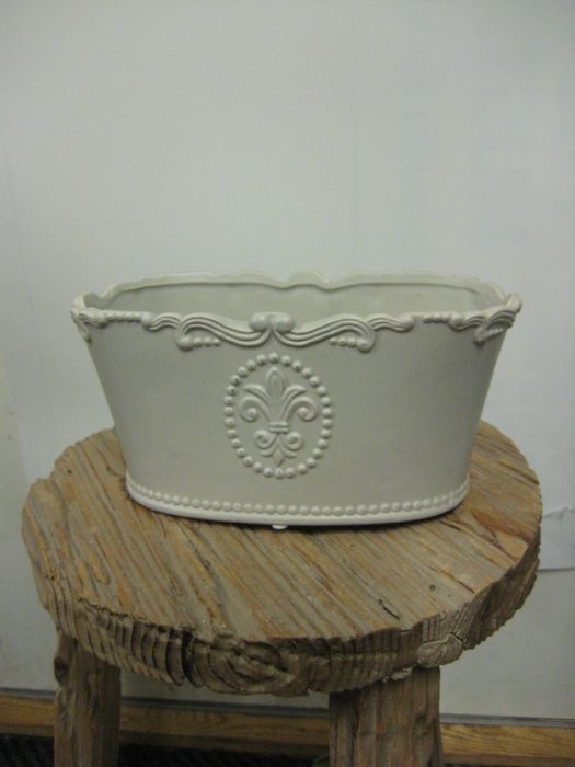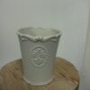 Vaaleanharmaa, ornamentti -kuvioinen, keraaminen ruukku.