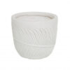 Jämäkkä saviruukku, jossa on kaunis lehtikuvio. Korkeus 10,5 cm, halkaisija 11,5 cm. Väri luonnonvalkea, kuviointi harmaa. Pohjassa ei ole reikää.