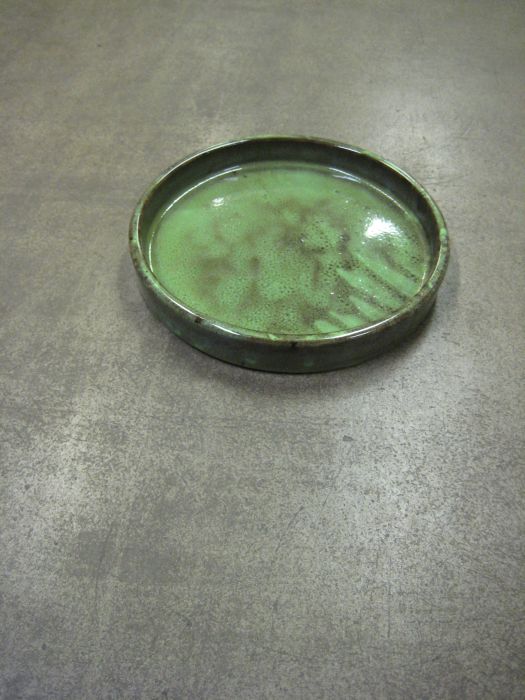Vihreä, keraaminen ruukun alunen.