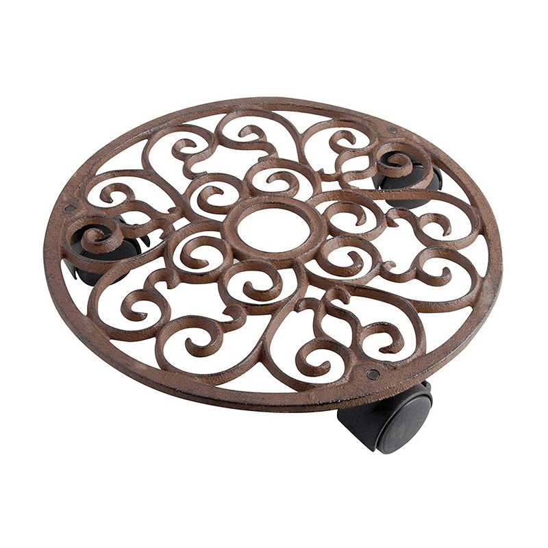 Ruukunalunen, jossa on kolme pyörää. Tämän avulla raskaan kukkaruukun siirtäminen on helppoa.