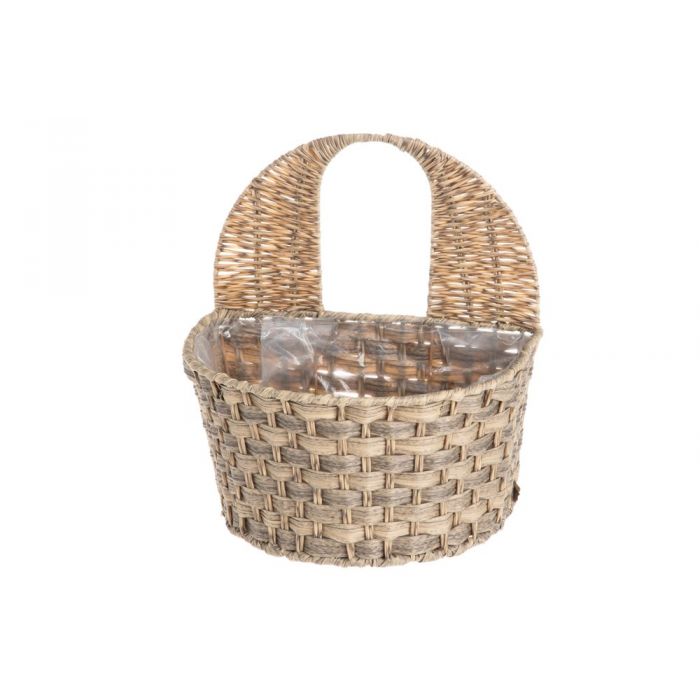 Seinäruukku ulko- ja sisäkäyttöön. Materiaali polyrottinkia, sisältä muovitettu.