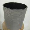 Jämäkkä saviruukku, jossa on kaunis lehtikuvio. Korkeus 10,5 cm, halkaisija 11,5 cm. Väri luonnonvalkea, kuviointi harmaa. Pohjassa ei ole reikää.