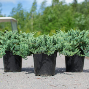 Matala- ja tiheäkasvuinen maanpeitekataja. Neulaset ovat kauniin siniharmaat.