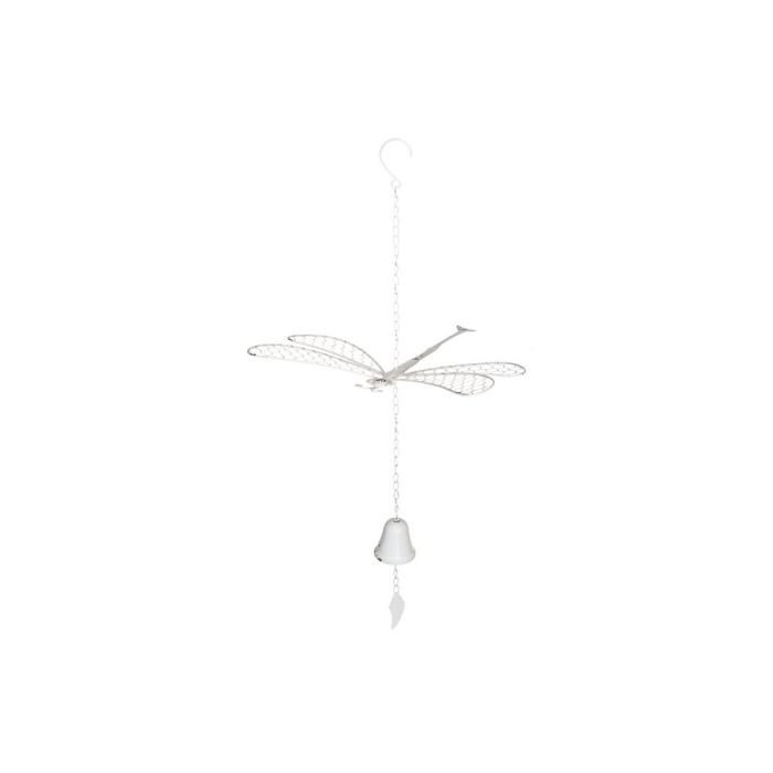 Tuulikello sudenkorento -koristeilla, soi kauniisti tuulessa. Materiaali metallia, väri valkoinen. Korkeus 90 cm, leveys 13,5 cm.