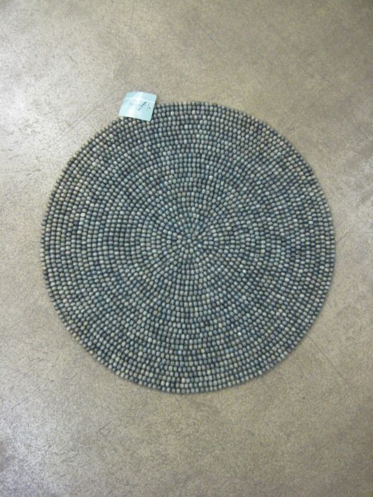 Pyöreä tabletti. Pohjassa tukeva kangas, johon on kiinnitetty puuhelmiä.
