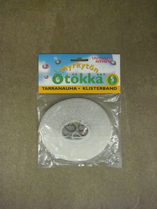 Ötökkä tarranauha ikkunaverkon kiinnittämiseen. Tarranauha kiinnitetään ensin ikkunankarmiin ja sitten kiinnitetään ikkunaverkko nauhaan.