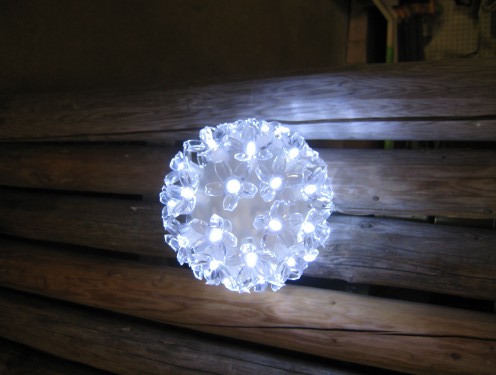 Kaunis led-valo. Pallossa 50 led -valokukkaa. Pallon halkaisija 13 cm.