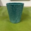 Upea, vihreä keramiikkaruukku vaalealla kuvioinnilla.